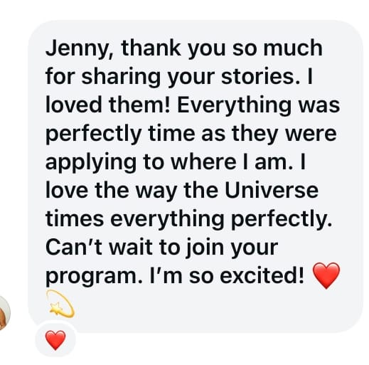Jenny's confidence really helped me. She was straightforward and and infused her confidence into me as well. She is always so encouraging and made me feel like this is possible, when I frequently lay in bad and can't sleep over how scary and impossible it feels. The best money I've ever spent!